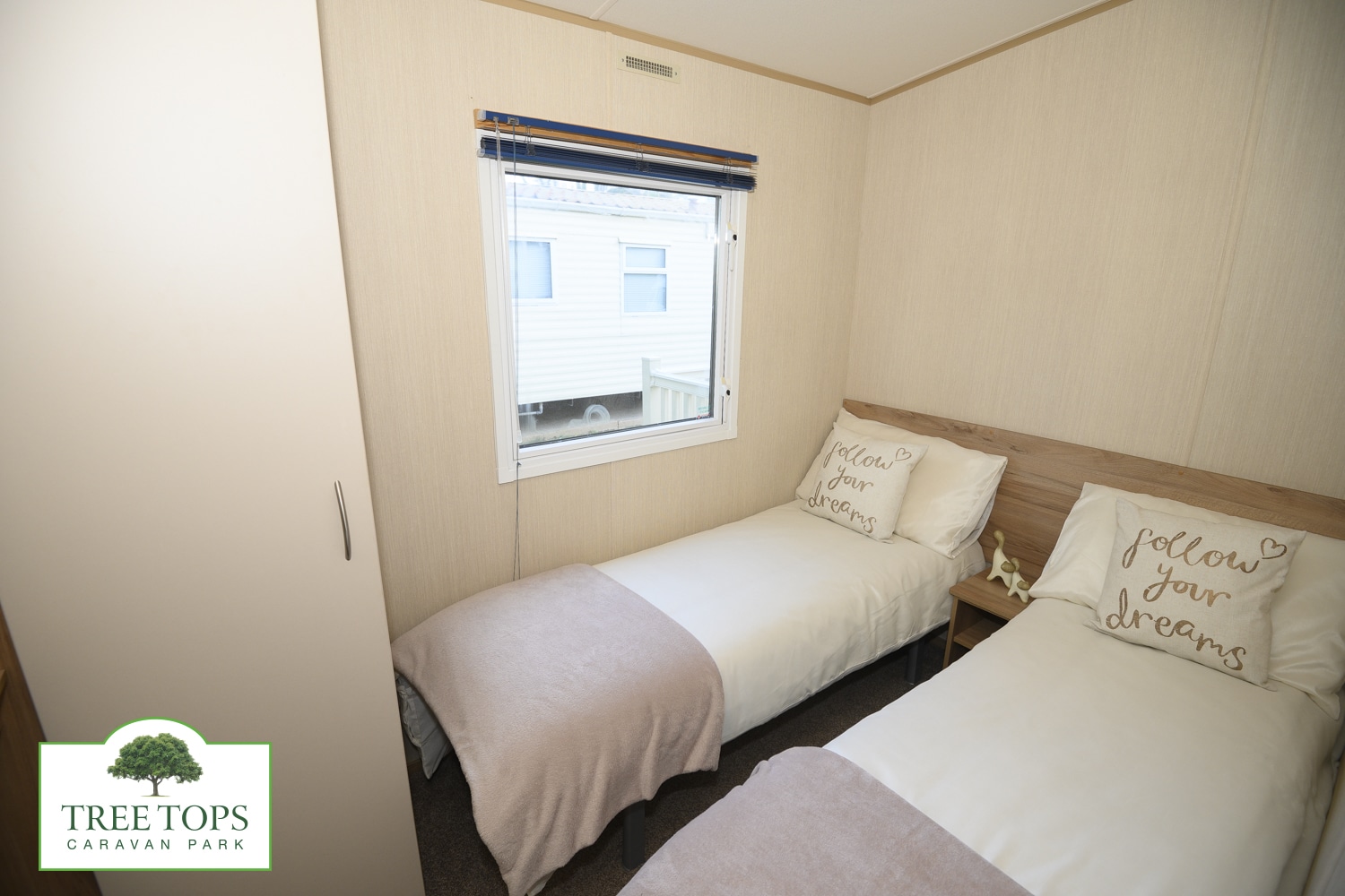 - Bedroom 2 with twin single beds, and wardrobe