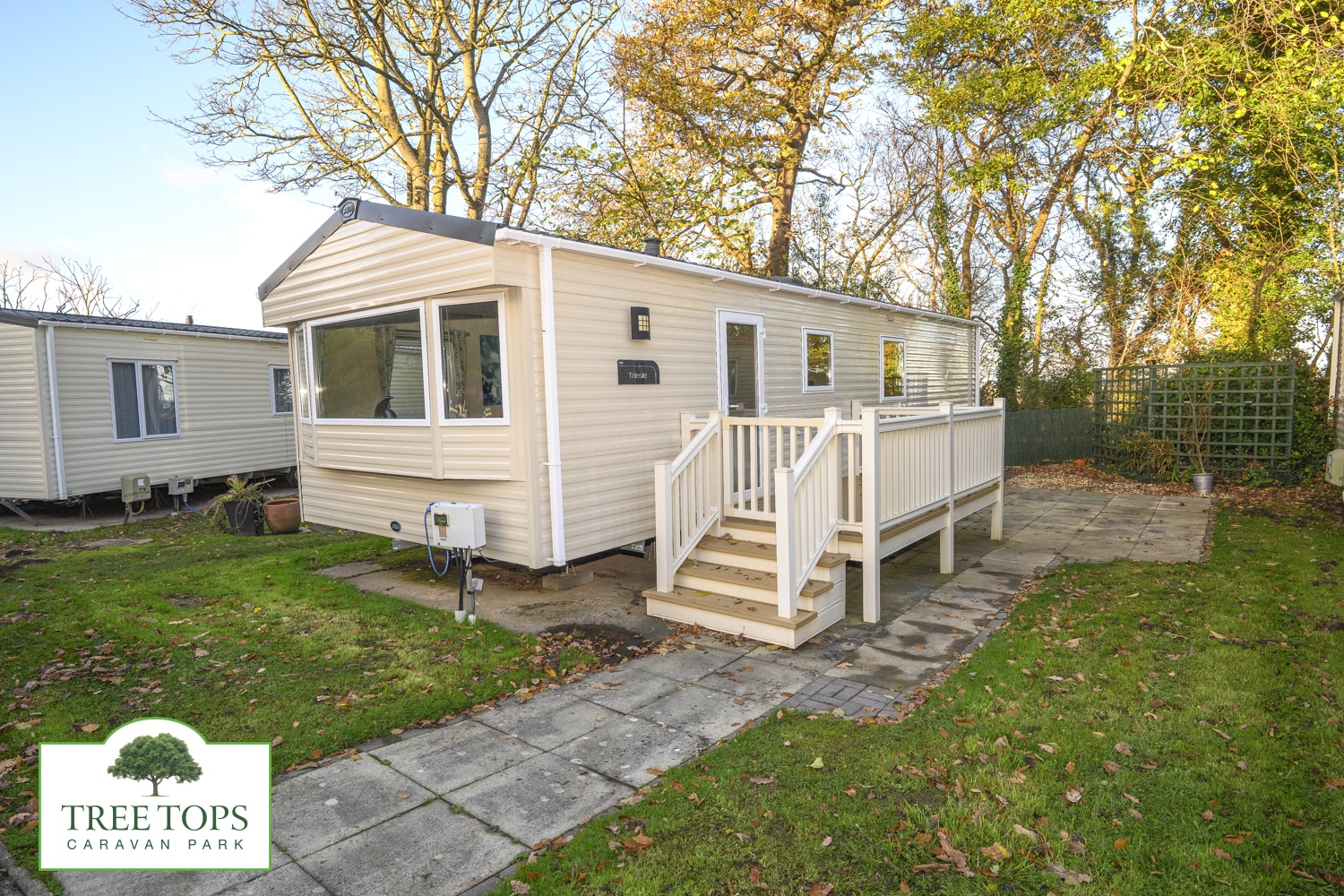 Sited on a sunny plot, and close to the Japanese Garden, you can enjoy relaxing on the caravans’ side decking or patio when you’re not out exploring the local area.